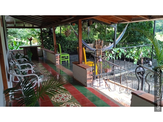Clasica finca de Recreo con charco propio, cascada tal como se muestra en la foto.  Ubicada a 10 minutos del corregimiento Palomos y a 10 minutos de Fredonia.  Con buena via de acceso (entra carro bajito), tiene 3 casas, una de ellas del mayordomo, 4 habitaciones en total, 4 baños, deck, BBQ, zonas verdes, una hermosa vista, agua propia, amplios corredores.  Area del lote 9.600 mt2